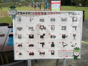あいにくの雨でしたが多くの方に来場いただき、小型家電リサイクル制度とレアメタルの重要性、リチウムイオン電池の処分方法について学んでいただきました。
